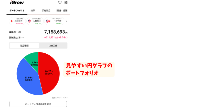 - 直感的で見やすいポートフォリオ(資産配分)