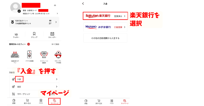 『マイページ』から入出金ができます。