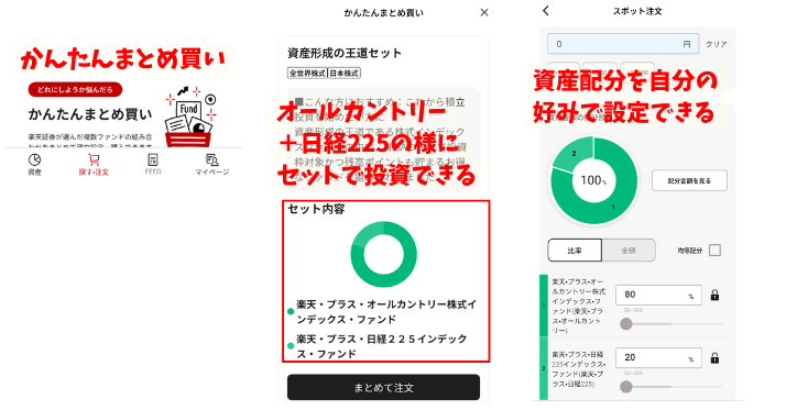 『かんたんまとめ買い』は、おすすめ投資信託のセット販売をしてくれる便利な機能です。